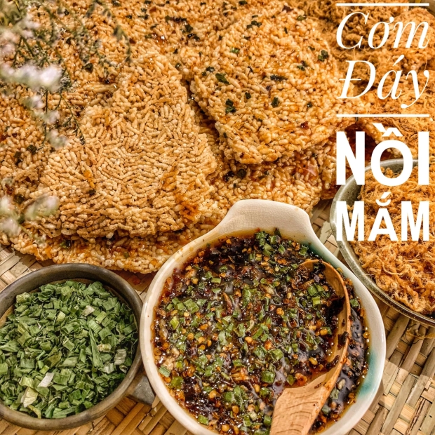 Cơm cháy đáy nồi bông được làm từ gạo dẻo, sau đó ép mỏng vỉ rồi cho vào lò sấy. Nước mắm tỏi ớt pha kẹp rưới lên. Đặc biệt chà bông là hàng đặt riêng để thích hợp ăn cơm cháy mắm. Chứ ko phải loại có pha bột để ăn xôi hay bánh mì