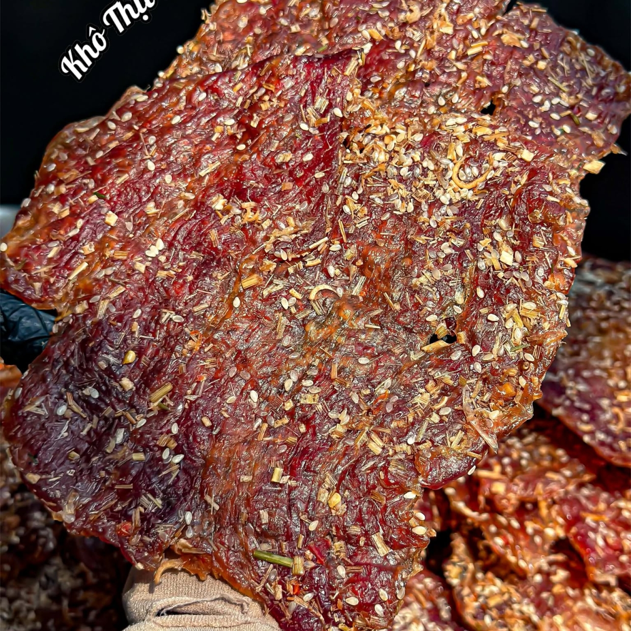 Khô thịt heo sả được tẩm ướp vừa vị, mùi sả thơm nhẹ, sợi thịt mềm, dễ ăn. Phù hợp làm món ăn vặt hoặc ăn kèm cơm, xôi, bánh mì đều ngon.