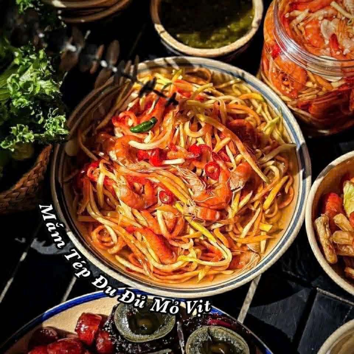 Món mắm tép đu đủ là sự kết hợp hài hòa giữa tép đồng tươi săn chắc và đu đủ mỏ vịt giòn ngọt, mang đến vị đậm đà, chua nhẹ – cay thơm, ăn kèm cơm nóng hay món luộc đều rất bắt vị.