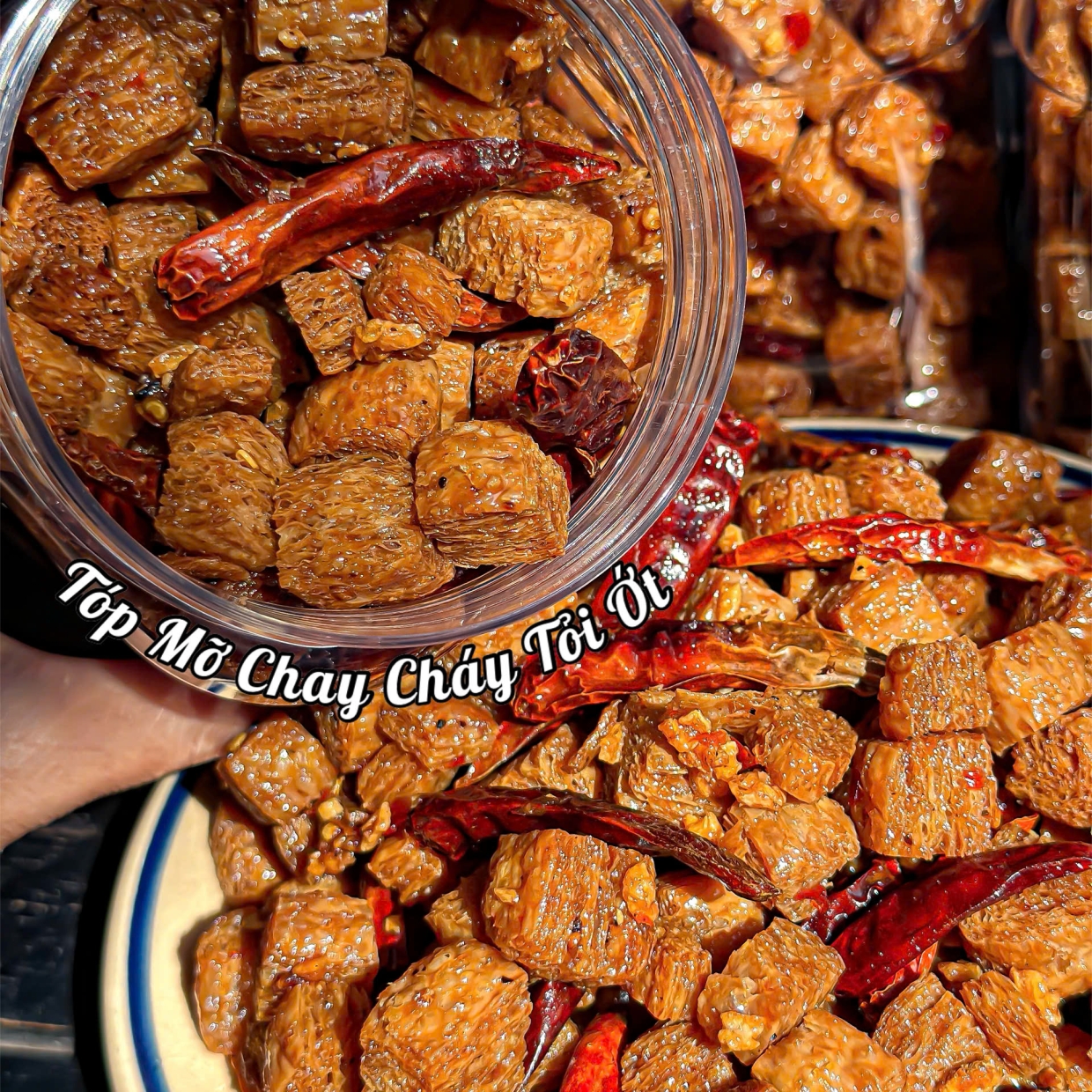 Tóp mỡ chay cháy tỏi được làm theo kiểu khô ráo, miếng vừa ăn, áo tỏi phi thơm nhẹ.